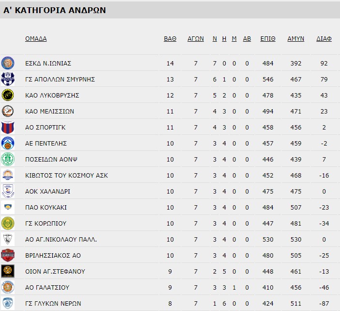 Χωρίς ήττα συνεχίζει η ΕΣΚΔ Νέας Ιωνίας μετά το πέρας της 7ης αγωνιστικής της Α' ΕΣΚΑ ανδρών. Νίκη έκαναν τόσο ο Απόλλων Σμύρνης, όσο και ο ΚΑΟ Μελισσίων, ενώ την έκπληξη έκανε ο Βρηλισσιακός κόντρα στον ΚΑΟ Λυκόβρυσης.