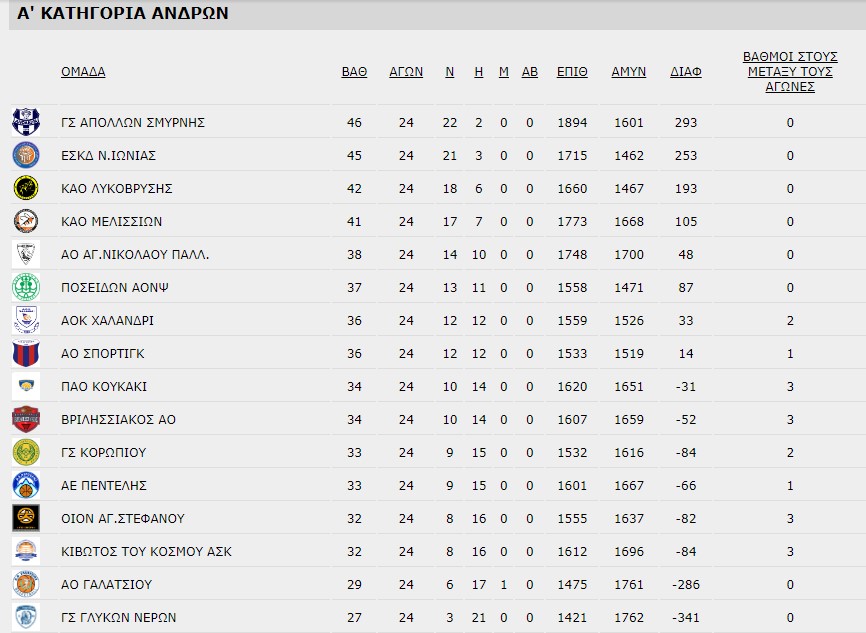 Α' ΕΣΚΑ ανδρών - Μόνος πρώτος στην κορυφή ο Απόλλωνας (pic)