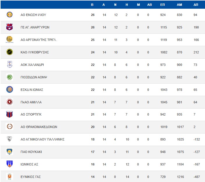 Συγκάτοικοι είναι στην κορυφή του βαθμολογικού πίνακα οι Άγιοι Ανάργυροι και το Ίλιον οι οποίοι συνέχισαν με νίκες στο πλαίσιο της 14ης αγωνιστικής της Α' ΕΣΚΑ ανδρών.