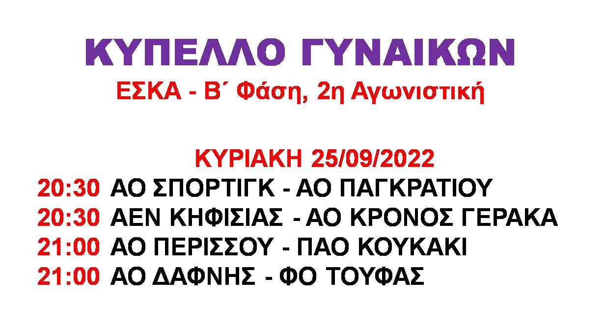 Το Σπόρτινγκ που έχει στην κατοχή του 21 πανελλήνια πρωταθλήματα, υποδέχεται το Παγκράτι, ενώ ο ΑΟ Περισσού έχει προχωρίσει μέχρι και την 8αδα αν και βρίσκεται στην τελευταία κατηγορία της ΕΣΚΑ.