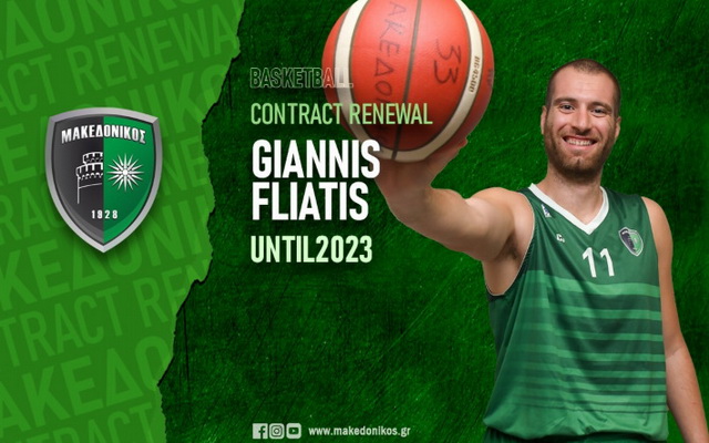 Την φανέλα του Μακεδονικού θα φορά για τέταρτη συνεχόμενη χρονιά ο Γιάννης Φλιάτης καθώς η ομάδα της Θεσσαλονίκης ανακοίνωσε την ανανέωση της συνεργασίας της με τον 31χρονο αρχηγό της.