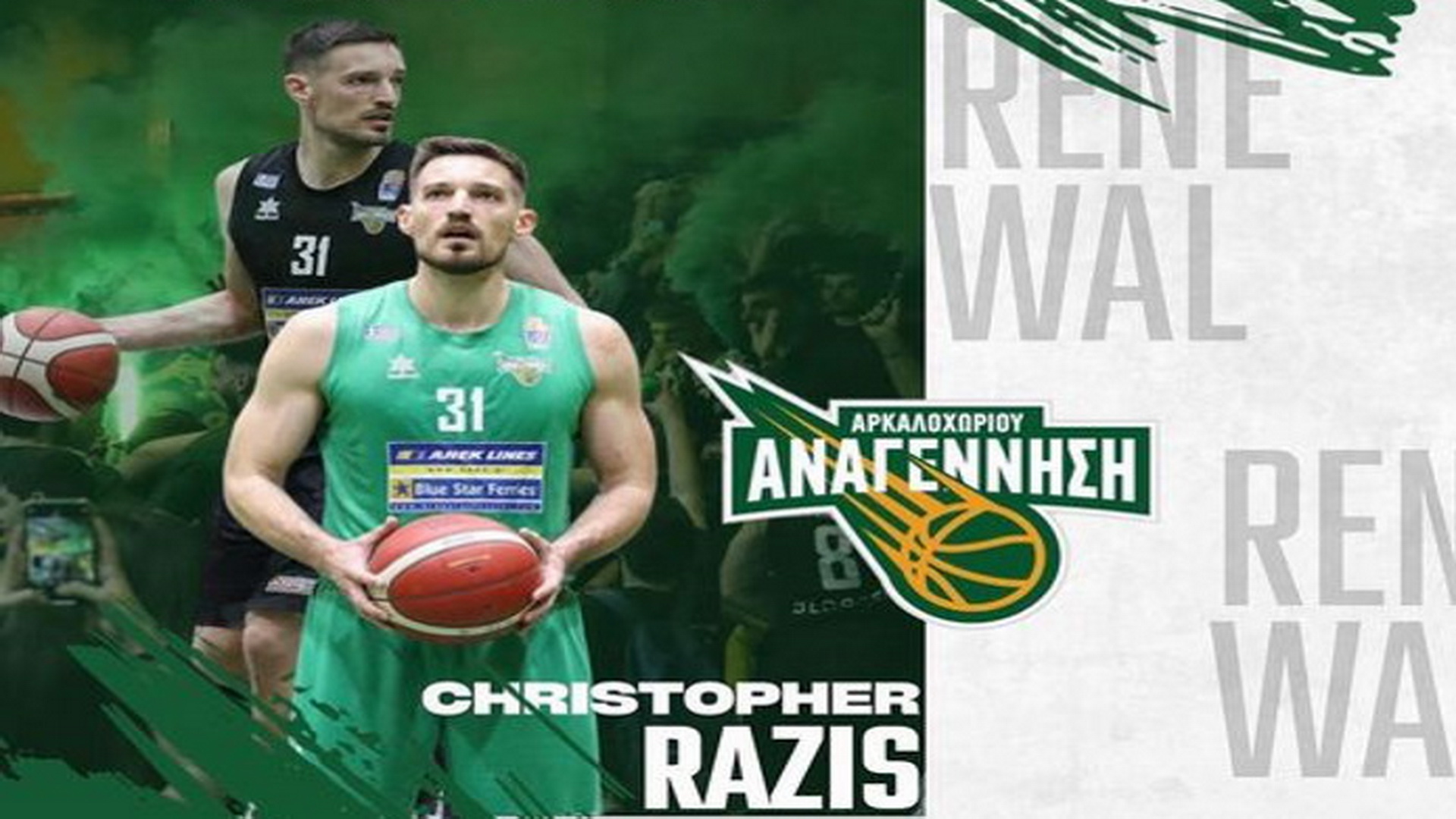 Την φανέλα της Αναγέννησης θα φορά και την νέα σεζόν ο Κρίστοφερ Ραζής, καθώς η ομάδα του Αρκαλοχωρίου ανακοίνωσε την ανανέωση της συνεργασίας της με τον 34χρονο γκαρντ, ο οποίος συνεχίζει παράλληλα και στην θέση του τεχνικού διευθυντή.