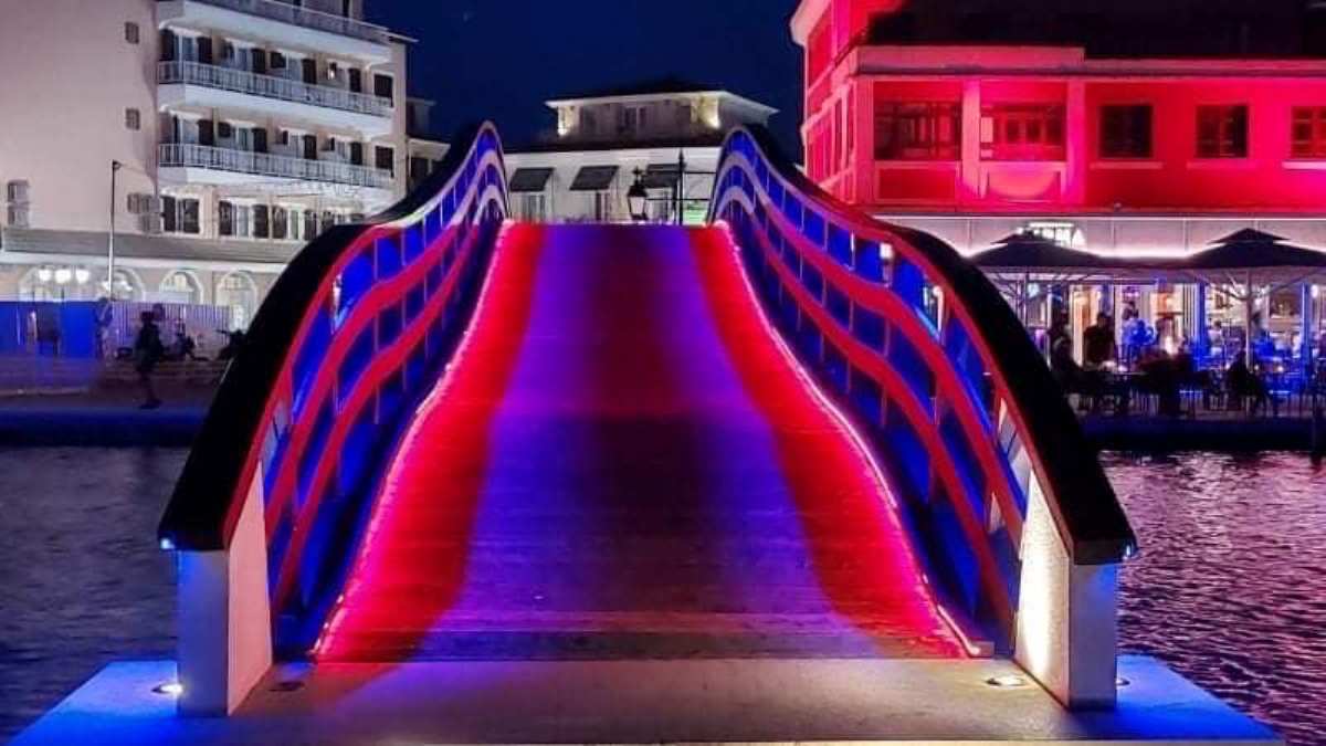 Στα χρώματα της Δόξας Λευκάδας φωταγωγήθηκε η ξύλινη γέφυρα του νησιού ως τιμή για την άνοδο της ομάδας στην Elite League.