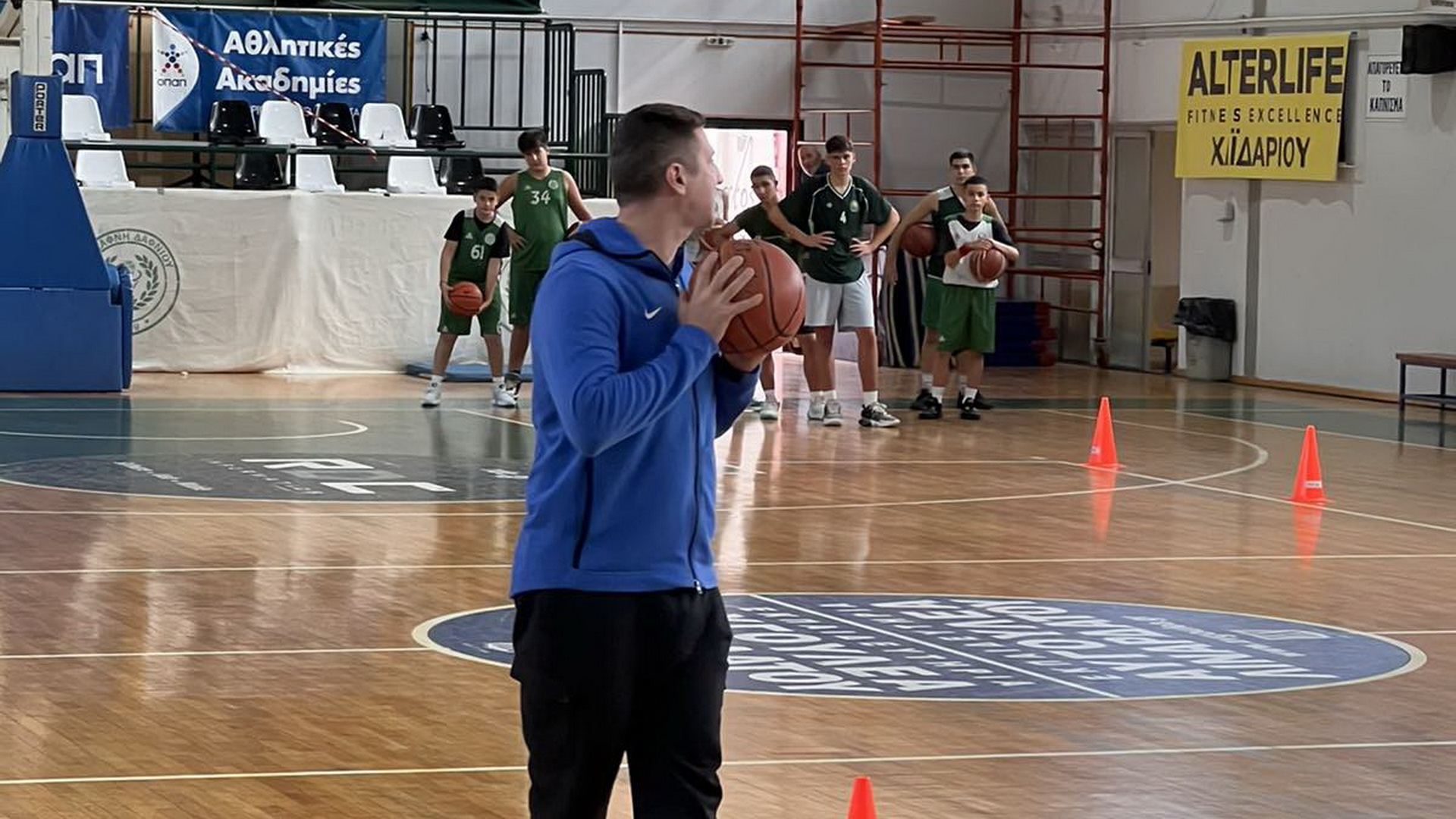 Ο προπονητής της Εθνικής Ελλάδας U20 βρέθηκε στο 1ο κλειστό γήπεδο Χαϊδαρίου, προκειμένου να μοιραστεί τα μυστικά του μπάσκετ με τους παίκτες των τμημάτων Παίδων και Παμπαίδων του συλλόγου, τους οποίους, μάλιστα και προπόνησε ο ίδιος.