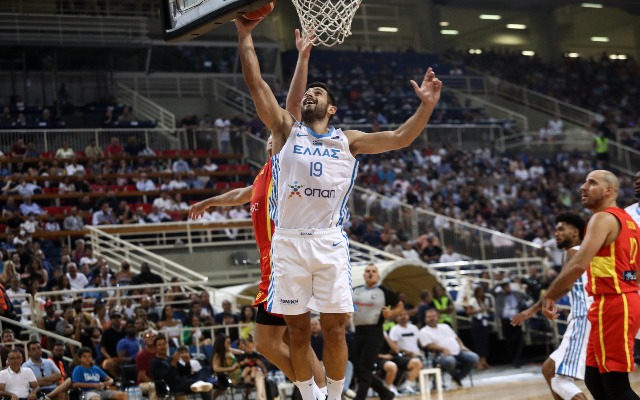 Φάση βγαλμένη από το...NBA στο φιλικό αγώνα της Εθνικής Ελλάδας με την Εθνική Ισπανίας.