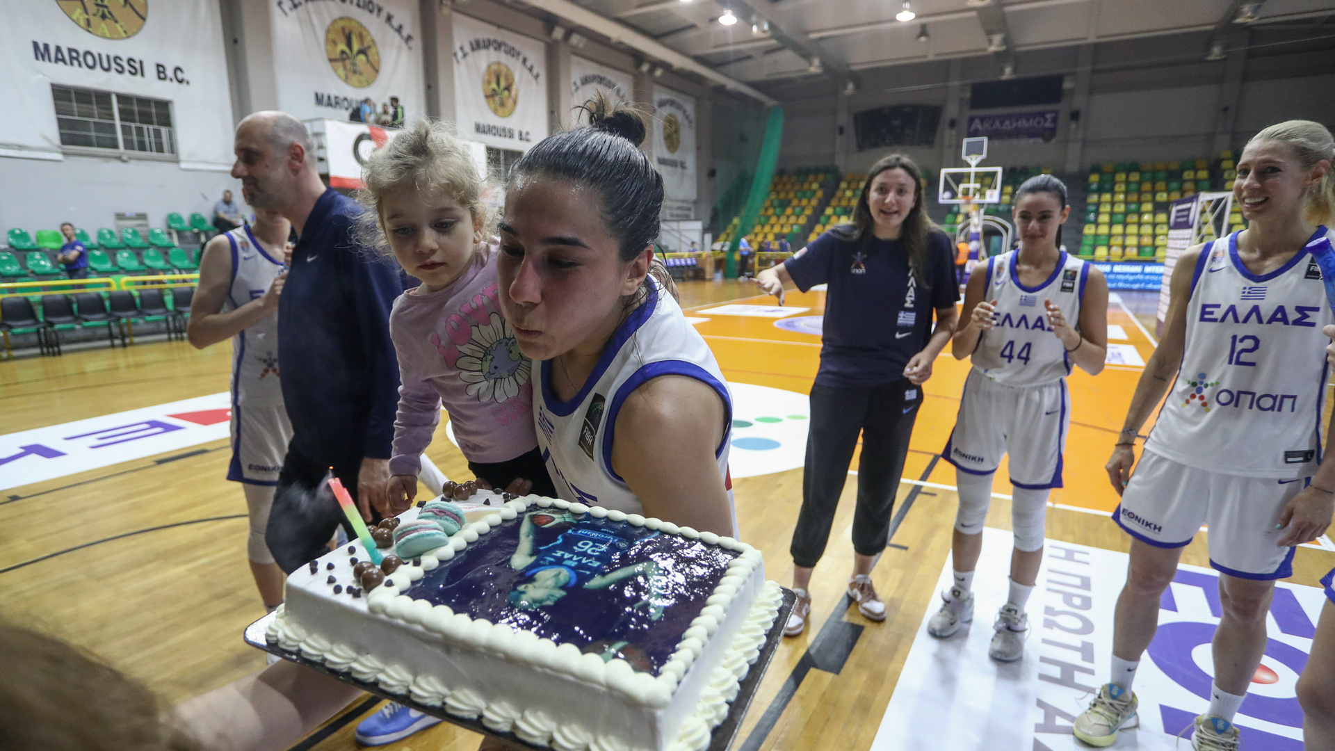 Όμορφες στιγμές εκτιλύχθηκαν την πρώτη μέρα του τουρνουα «Βάσω Μπεσκάκη» στο κλειστό του Άγιου Θωμά, όπου μετά τη νίκη με την Κροατία οι παίκτριες της Ελλάδας έκαναν έκπληξη με τούρτα στην Ιωάννα Δίελα καθώς η διεθνής δυναμική φόργουορντ είχε τα γενέθλιά της.