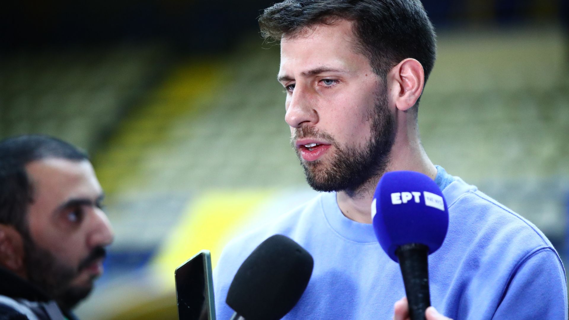 «Είναι τιμή μου που είμαι εδώ, ό,τι μου ζητηθεί θα το κάνω. Έχουμε τρεις μέρες να προετοιμαστούμε και να κάνουμε το καλύτερο δυνατό για να προκριθούμε στο Ευρωμπάσκετ. Βλέπω την εξέλιξή μου βήμα-βήμα, όχι με άλματα. Κοιτάζω να προπονούμαι καλά, να γίνομαι κάθε μέρα καλύτερος και πιστεύω πως με δουλειά όλα θα έρθουν. Το καλοκαίρι προσπάθησα να αντεπεξέλθω σε έναν ρόλο που μου έδωσε ο κόουτς Παπαδόπουλος στην Εθνική Νέων, οι προπονητές είδαν κάτι και με κάλεσαν και είναι τιμή μου. Προσωπικά πιστεύω πως υπάρχει ταλέντο, δουλεύουμε πολύ σωστά και θεωρώ ότι θα βγαίνουν με τον καιρό όλο και περισσότερα παιδιά. Η Μ. Βρετανία είναι ένας δυνατός αντίπαλος, δεν μπορούμε να την υποτιμήσουμε και στις μέρες που έχουμε θα δουλέψουμε όσο καλύτερα μπορούμε και θα είμαστε πολύ ανταγωνιστικοί».