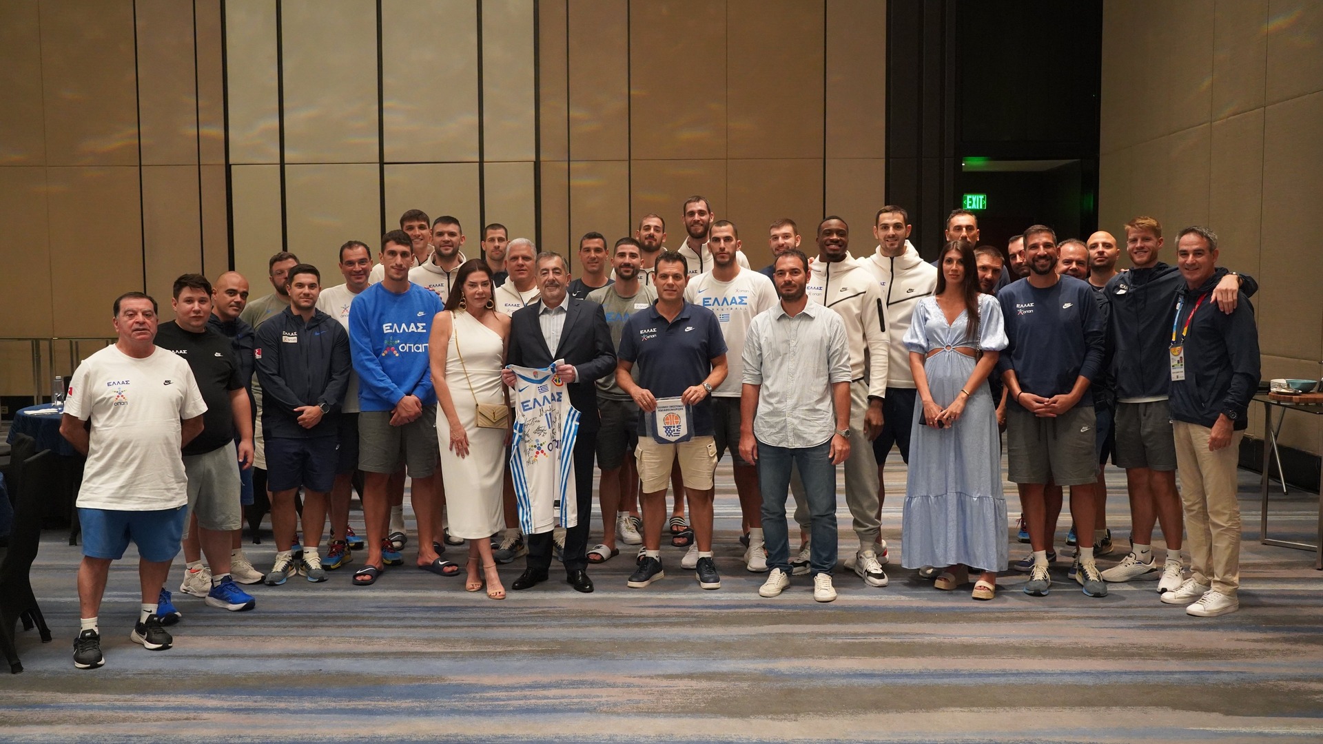 Ο Έλληνας πρέσβης στις Φιλιππίνες, Ιωάννης Πεδιώτης επισκέφτηκε το αντιπροσωπευτικό μας συγκρότημα και ευχήθηκε καλή επιτυχία για το Παγκόσμιο Κύπελλο 2023.