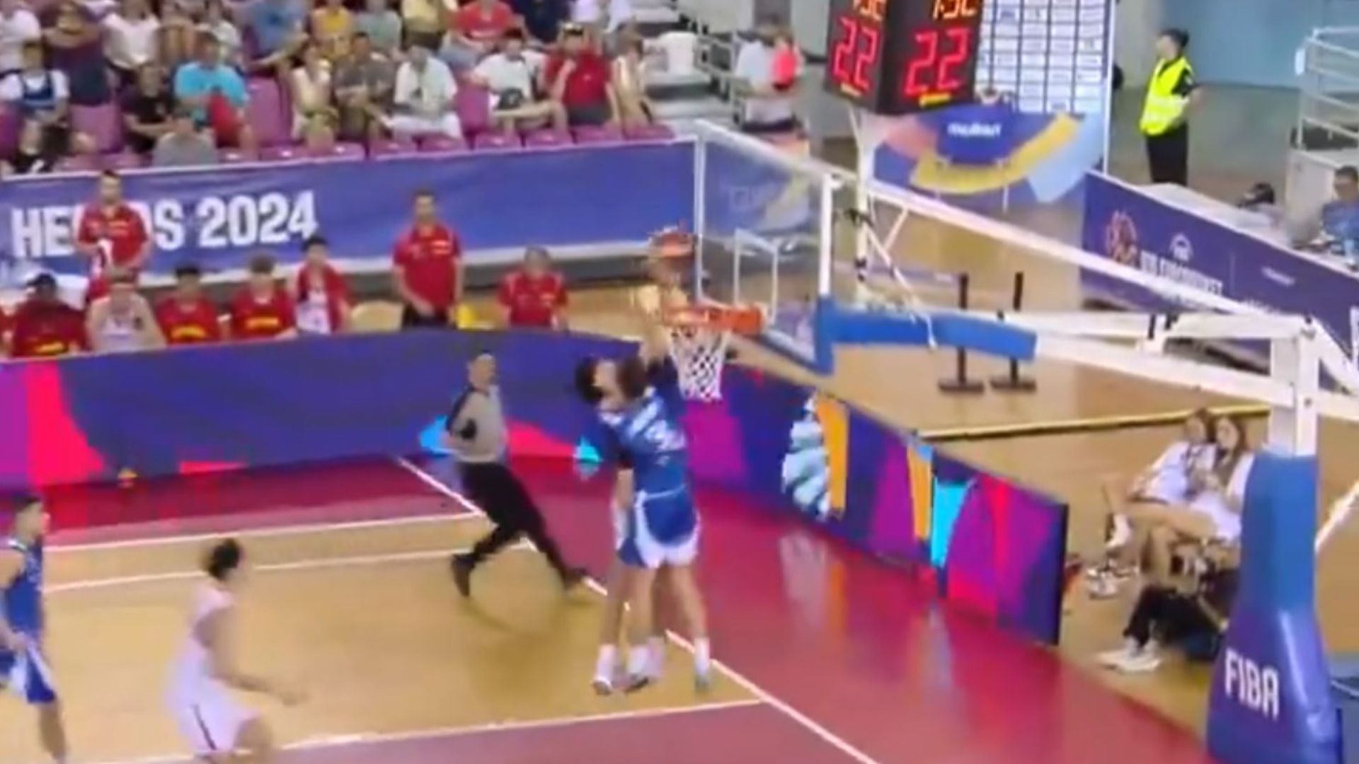 Φοβερή φάση στο πρώτο δεκάλεπτο του ημιτελικού μεταξύ της Ελλάδας και της Ισπανίας για το Eurobasket U16, με τον Ασημένιο να κόβει στα "ίσια" τον αντίπαλό του με τρομερό μπλοκ, βγάζοντας μια σπουδαία άμυνα, για να ακολουθήσει το τρίποντο του Χαρτόνα από τη γωνία, ολοκληρώνοντας μια εξαιρετική φάση και στις δύο πλευρές του παρκέ, μοιράζοντας ενθουσιασμό τις εξέδρες του κλειστού της Νέας Αλικαρνασσού.