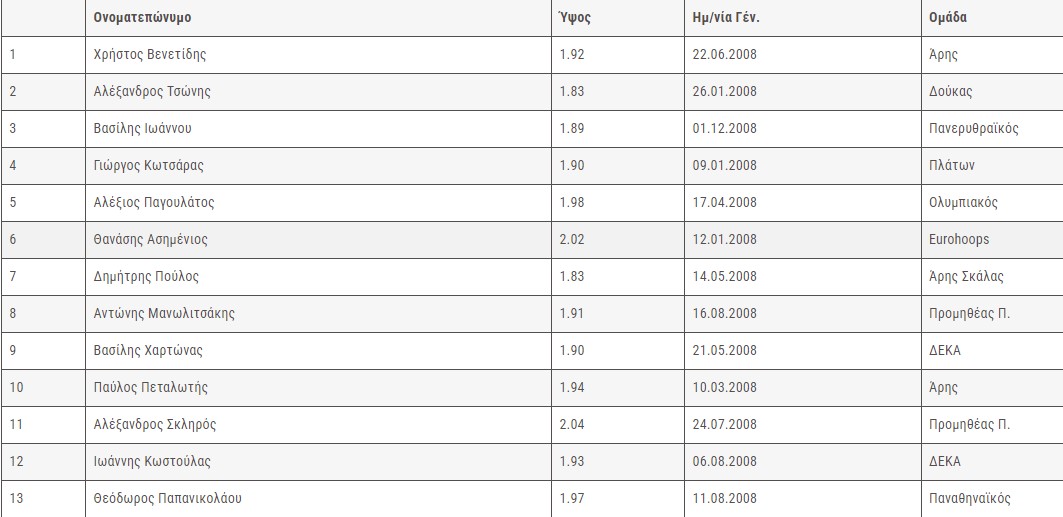 Οι αθλητές που καλούνται για το πρώτο τουρνουά που θα διεξαχθεί 27-29 Οκτωβρίου είναι οι εξής: