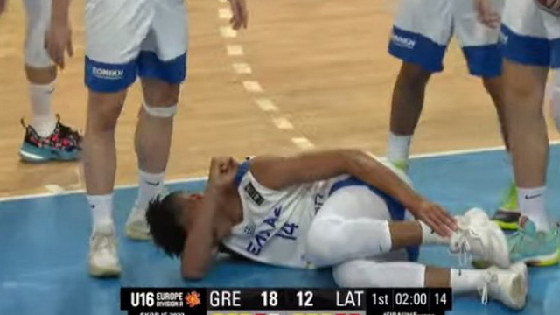 Η Ελλάδα, εκτός από την Λετονία, καλείται να αντιμετωπίσει και τον παράγοντα ατυχία, στο παιχνίδι για την φάση των «16» του Ευρωπαϊκού Πρωταθλήματος Παίδων, καθώς το αντιπροσωπευτικό μας συγκρότημα μετρά ήδη –1 παίκτη, από το πρώτο 10λεπτο της αναμέτρησης.