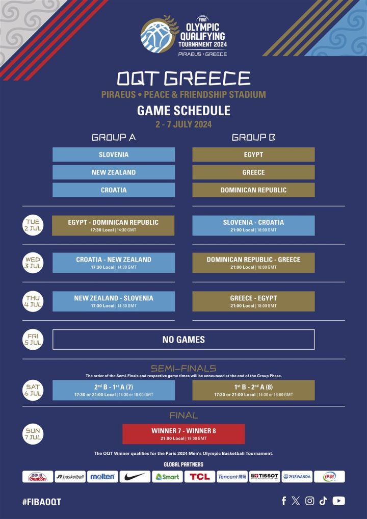 Η Ελλάδα θα φιλοξενήσει το ένα από τα τέσσερα προολυμπιακά τουρνουά, με την FIBA Να δίνει στην δημοσιότητα, μεταξύ άλλων, το πρόγραμμα των αγώνων του ΣΕΦ.