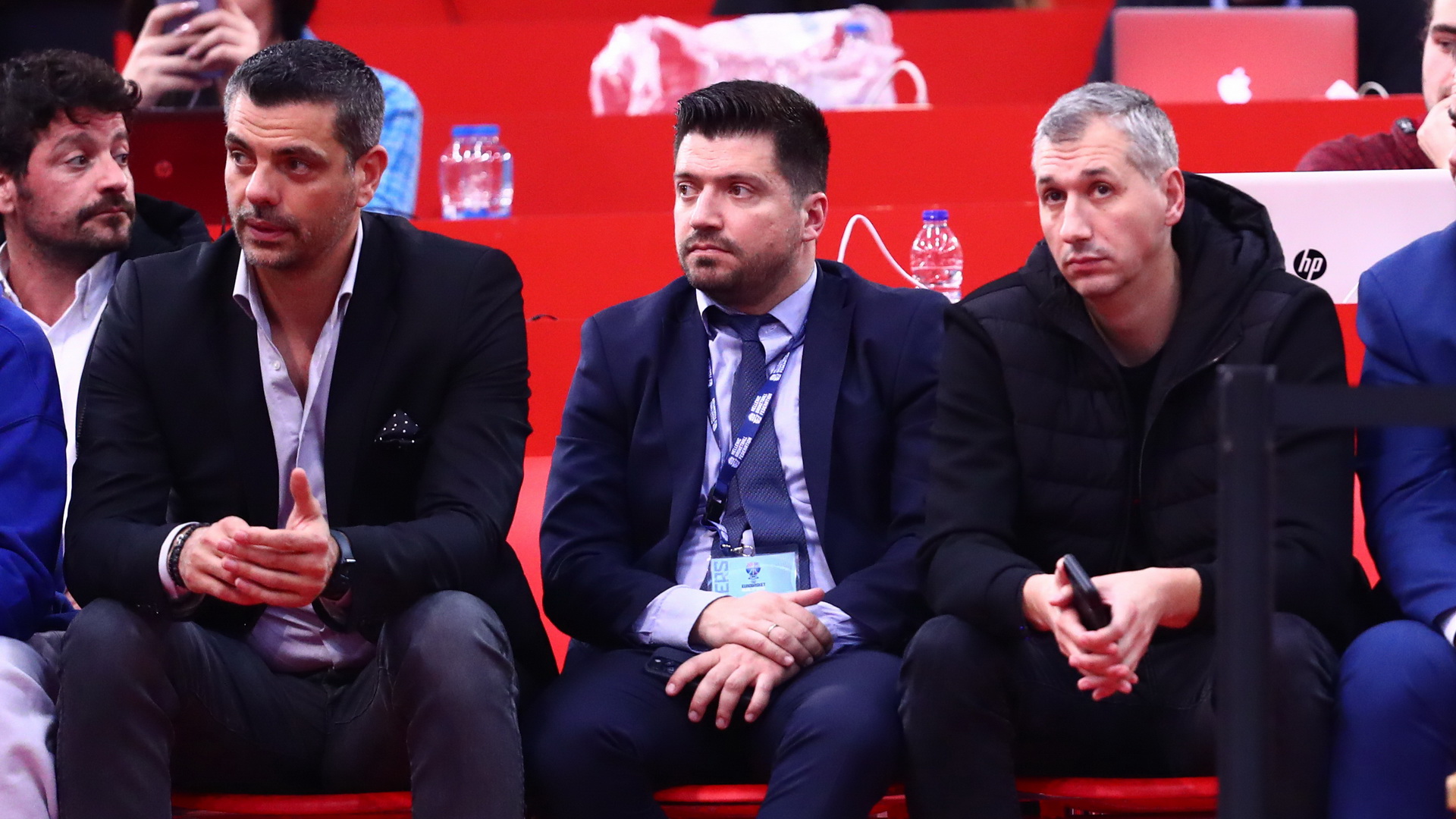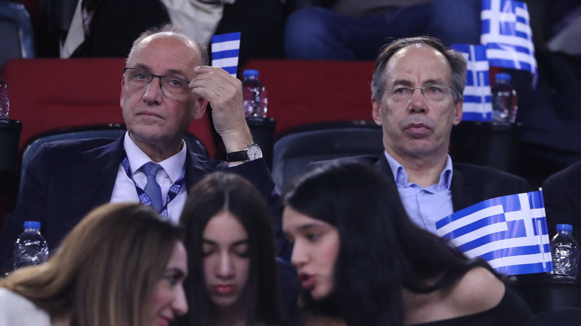 Λίγο πιο κοντά στο παρκέ, στις court seats, βρίσκονται ακόμα δύο πρώην συμπαίκτες του Σπανούλη και νυν στελέχη της ΕΟΚ, οι Δημήτρης Διαμαντίδης (σύμβουλος αναπτυξιακού προγράμματος) και Κώστας Τσαρτσαρής (υπεύθυνος αναπτυξιακού προγράμματος), ενώ από το φαληρικό κλειστό δεν θα μπορούσε να απουσιάσει και ο πρόεδρος της Ομοσπονδίας, Βαγγέλης Λιόλιος, με τον Ευθύμη Ρεντζιά.