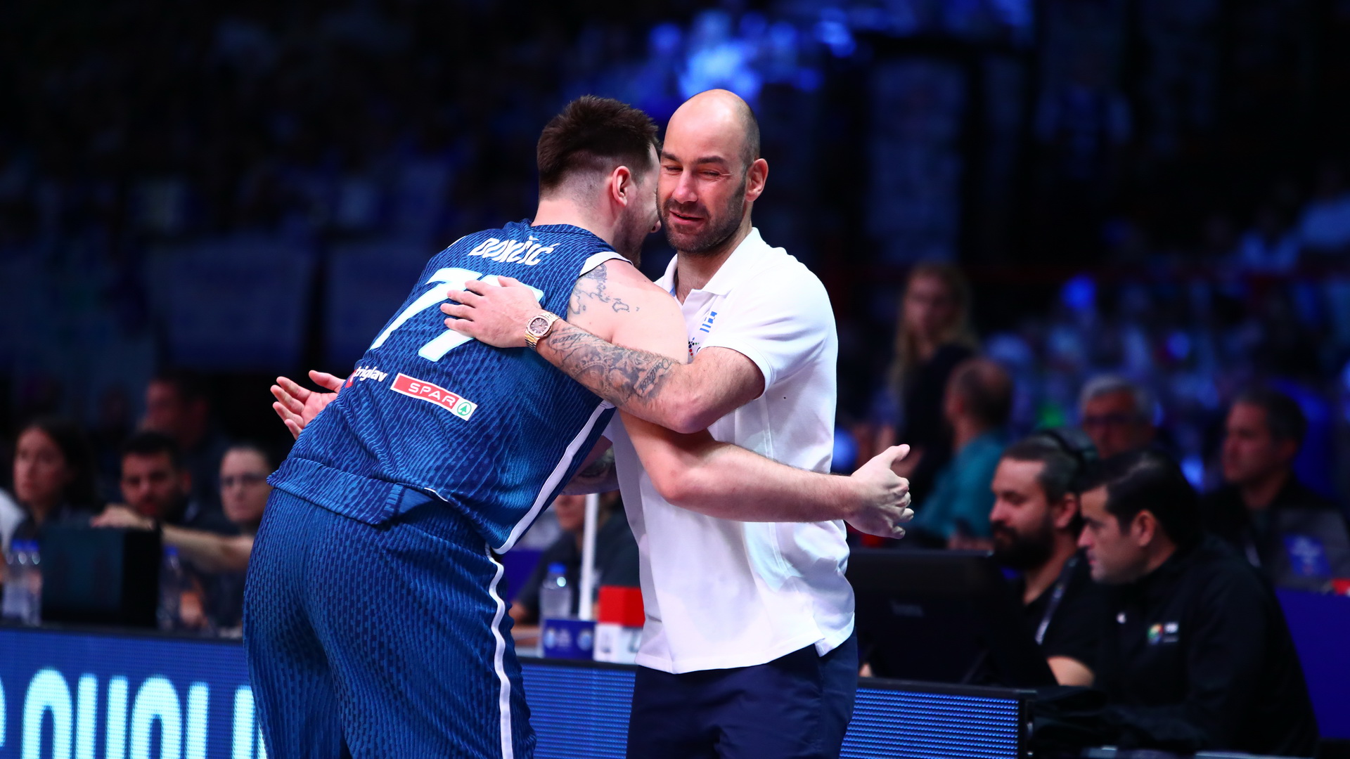 Έτσι, με αφορμή τον ημιτελικό του Προολυμπιακού του ΣΕΦ, ο Σλοβένος σούπερ σταρ δεν έχασε την ευκαιρία να αγκαλιάσει θερμά τον Έλληνα ομοσπονδιακό προπονητή.