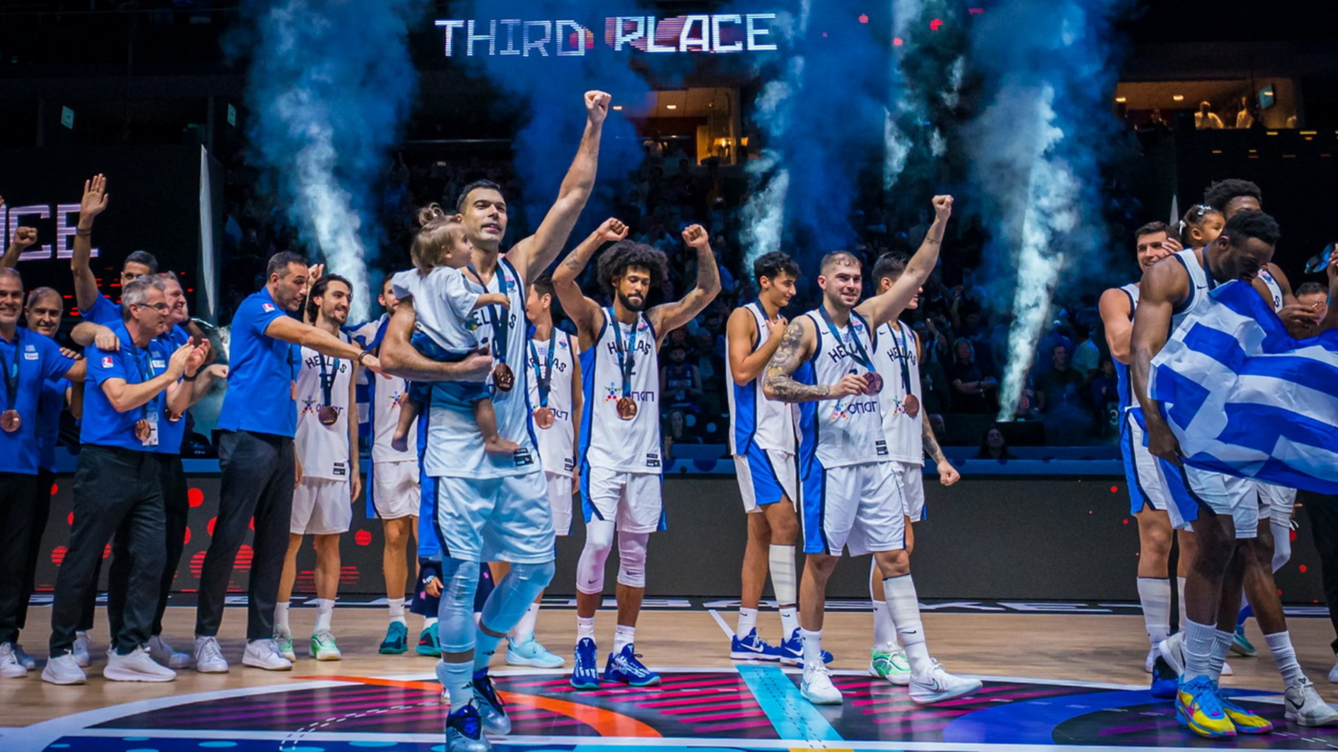 Η Εθνική Ανδρών επέστρεψε σε βάθρο μετά από 16 χρόνια, μετά την νίκη επί της Φινλανδίας, με τους Έλληνες διεθνείς να φορούν με περηφάνια στο στήθος τους το χάλκινο μετάλλιο και μετά να το γιορτάζουν με... συρτάκι!