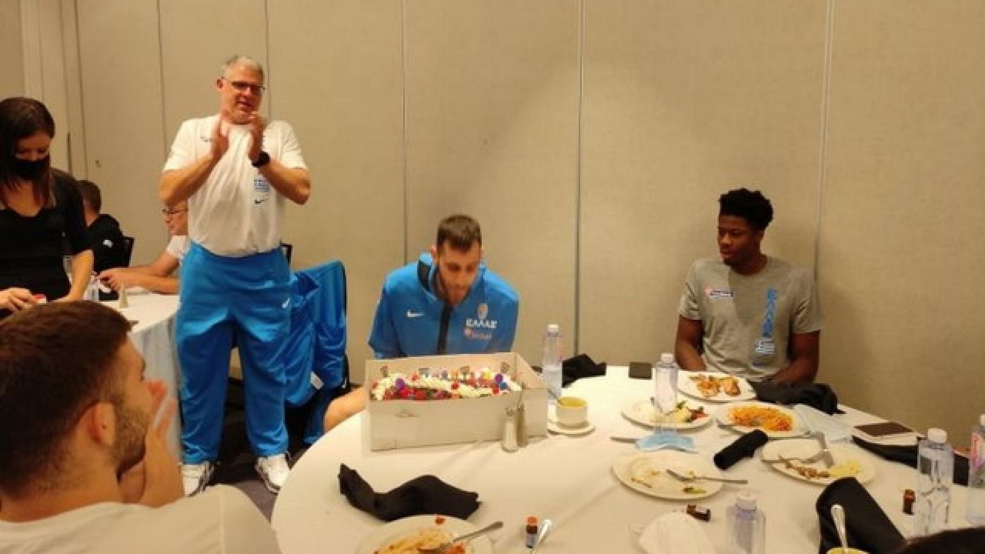 Έτσι, μετά τον θρίαμβο επί της Τουρκίας, ο 24χρονος σέντερ, γιόρτασε με τούρτα γενεθλίων, μαζί με τους συμπαίκτες του και τα υπόλοιπα μέλη της γαλανόλευκης αποστολής.