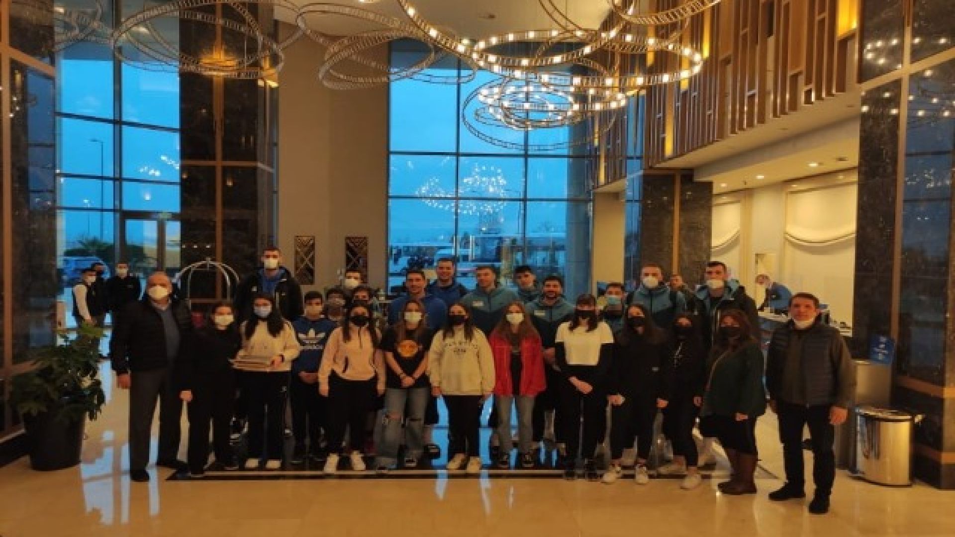 Μαθητές και μαθήτριες από το Ζωγράφειο Λύκειο της Πόλης, το ελληνικό σχολείο το οποίο μετράει 54 μαθητές, με τη συνοδεία του διευθυντή του Γιάννη Δεμιρτζόγλου, του υποδιευθυντή ο οποίος είναι Τούρκος και της ψυχολόγου Κατερίνα Τζίτζη, χειροκρότησαν την ομάδα και τη γέμισαν με ευχές και θετική αύρα εν όψει της αυριανής αναμέτρησης με την Τουρκία.
