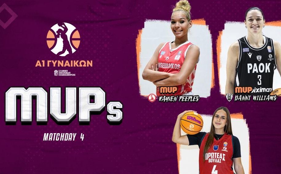Ντάνι Γουίλιαμς και Μίγια Πιπλς μοιράστηκαν τον τίτλο της MVP της 4ης αγωνιστικής της Α1 Γυναικών, ενώ Next Gen αναδείχθηκε η Στόλιγκα.