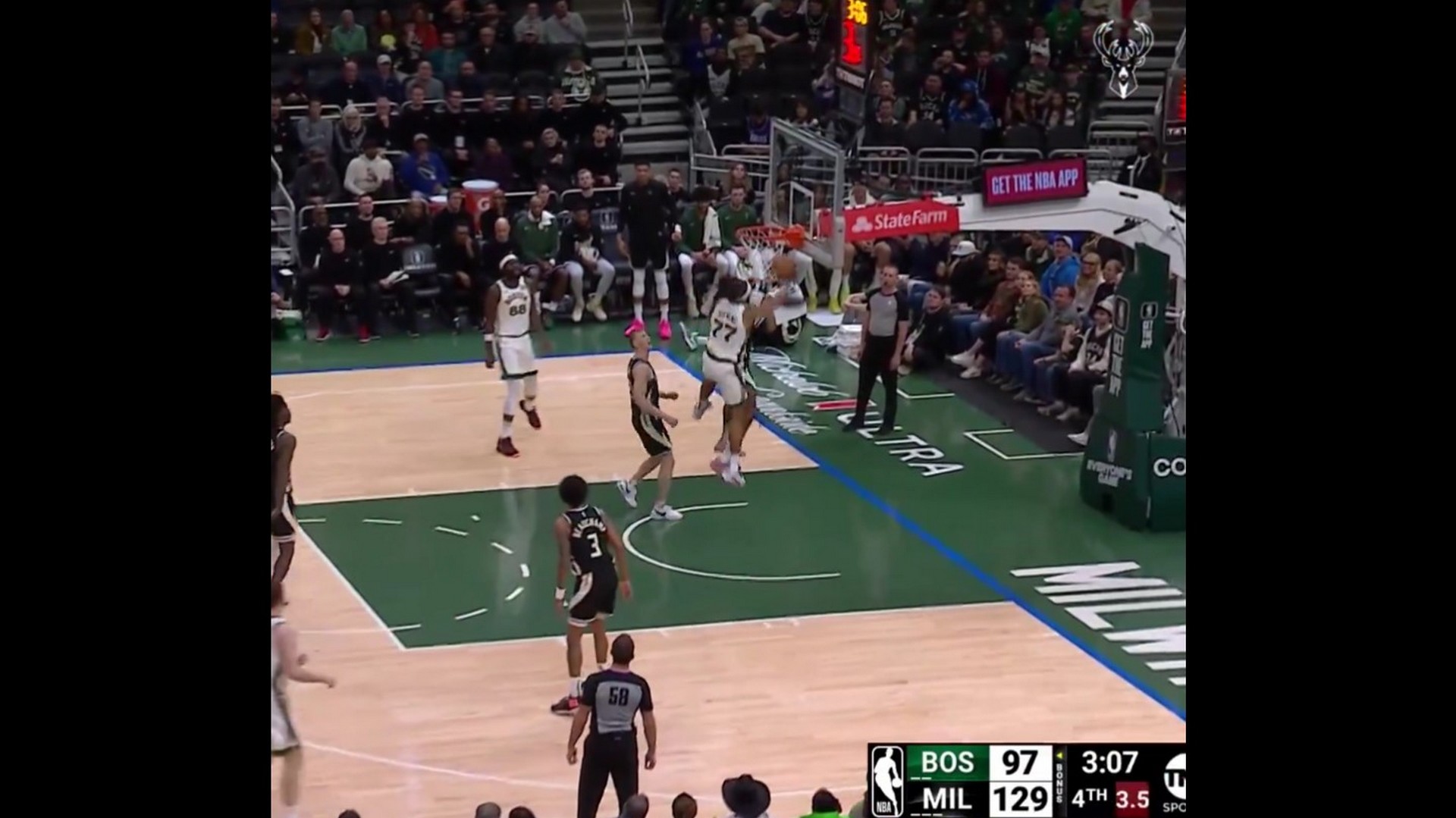 Ο Θανάσης Αντετοκούνμπο έκανε μια από τις γνωστές του κινήσεις και 3 λεπτά πριν το τέλος του ματς με τους Σέλτικς, με τον Έλληνα φόργουορντ να ρίχνει ένα εμφατικό μπλοκ στον Στίβενς.