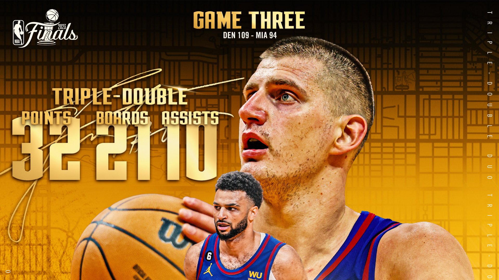 Ο Νίκολα Γιόκιτς και ο Τζαμάλ Μάρεϊ οδήγησαν τους Νάγκετς στο 2-1 επί των Χιτ έχοντας triple double και μάλιστα έφτασαν και σε ιστορικό ρεκόρ, με τους δυο αθλητές να είναι υπεύθυνοι για τους 85 από τους 109 πόντουςπου σημείωσαν συνολικά οι παίκτες του Ντένβερ.