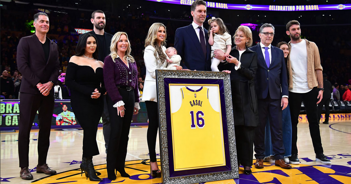 Η φανέλα του Πάο Γκασόλ βρίσκεται και επίσημα δίπλα σε αυτές των θρύλων των Λέικερς, με την συγκίνηση, στην τελετή που διοργάνωσαν οι «Λιμνάνθρωποι», στο ημίχρονο του αγώνα με τους Γκρίζλις, προς τιμήν του Ισπανού σέντερ, να είναι έκδηλη.