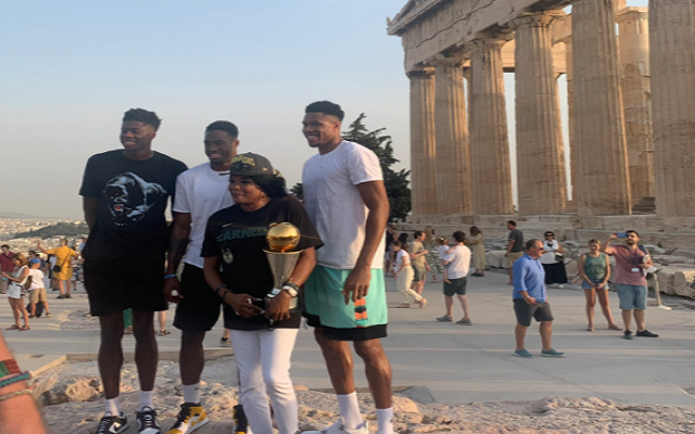 Ο Γιάννης, ο Θανάσης και ο Κώστας Αντετοκούνμπο μαζί με την μητέρα τους επισκέφτηκαν την Ακρόπολη, έχοντας αγκαλιά το τρόπαιο του ΝΒΑ, αλλά και αυτό του NBA Finals MVP.