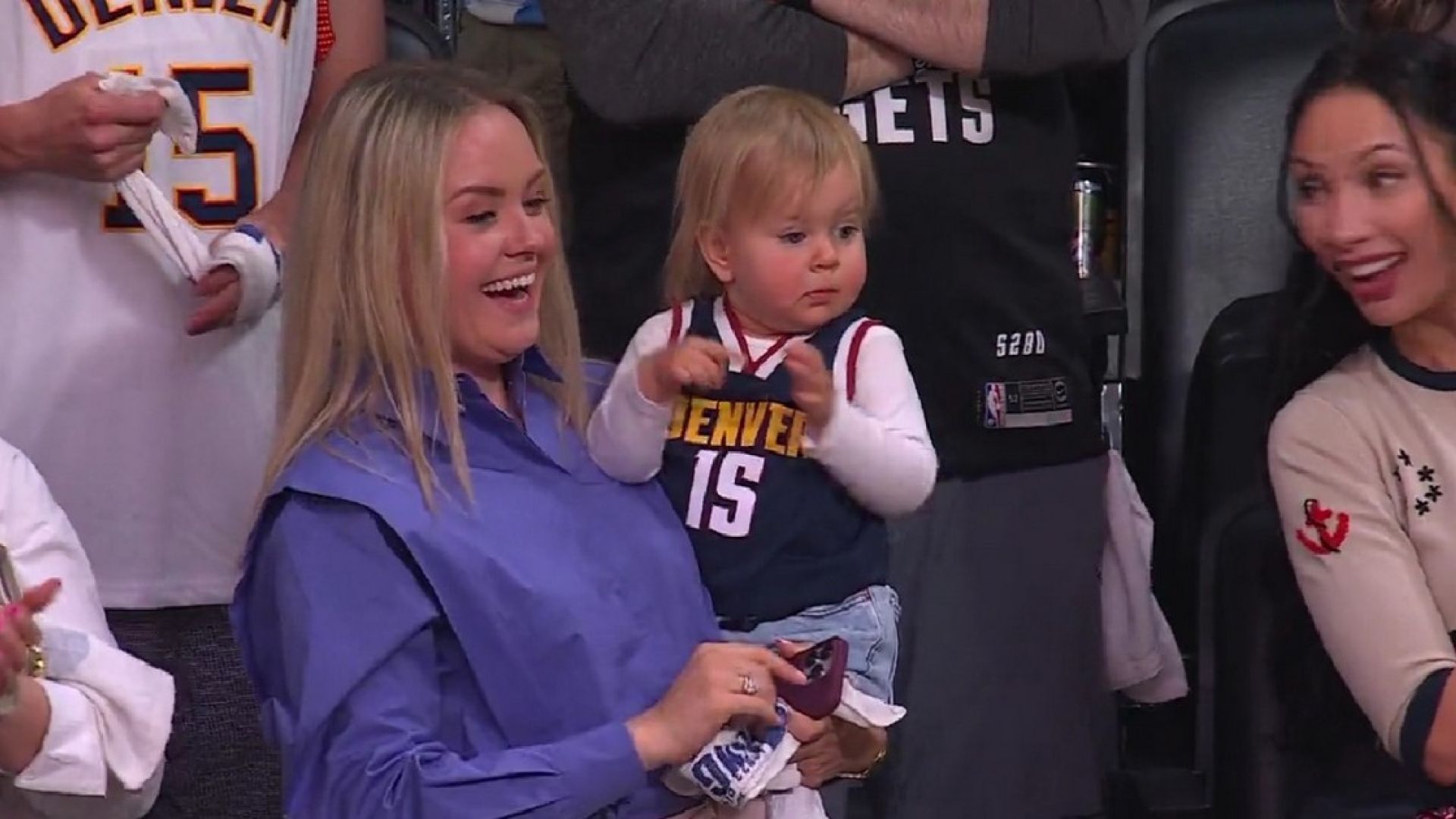 Οι Νάγκετς θέλουν να φορέσουν στο χέρι τους το δαχτυλίδι των πρωταθλητών του NBA και η κόρη του Γιόκιτς πανηγύρισε τη νίκη επί των Σανς, κάνοντας το συνθηματικό νόημα με το χέρι της, με τον πατέρα της ανταποδίδει όλος χαρά.