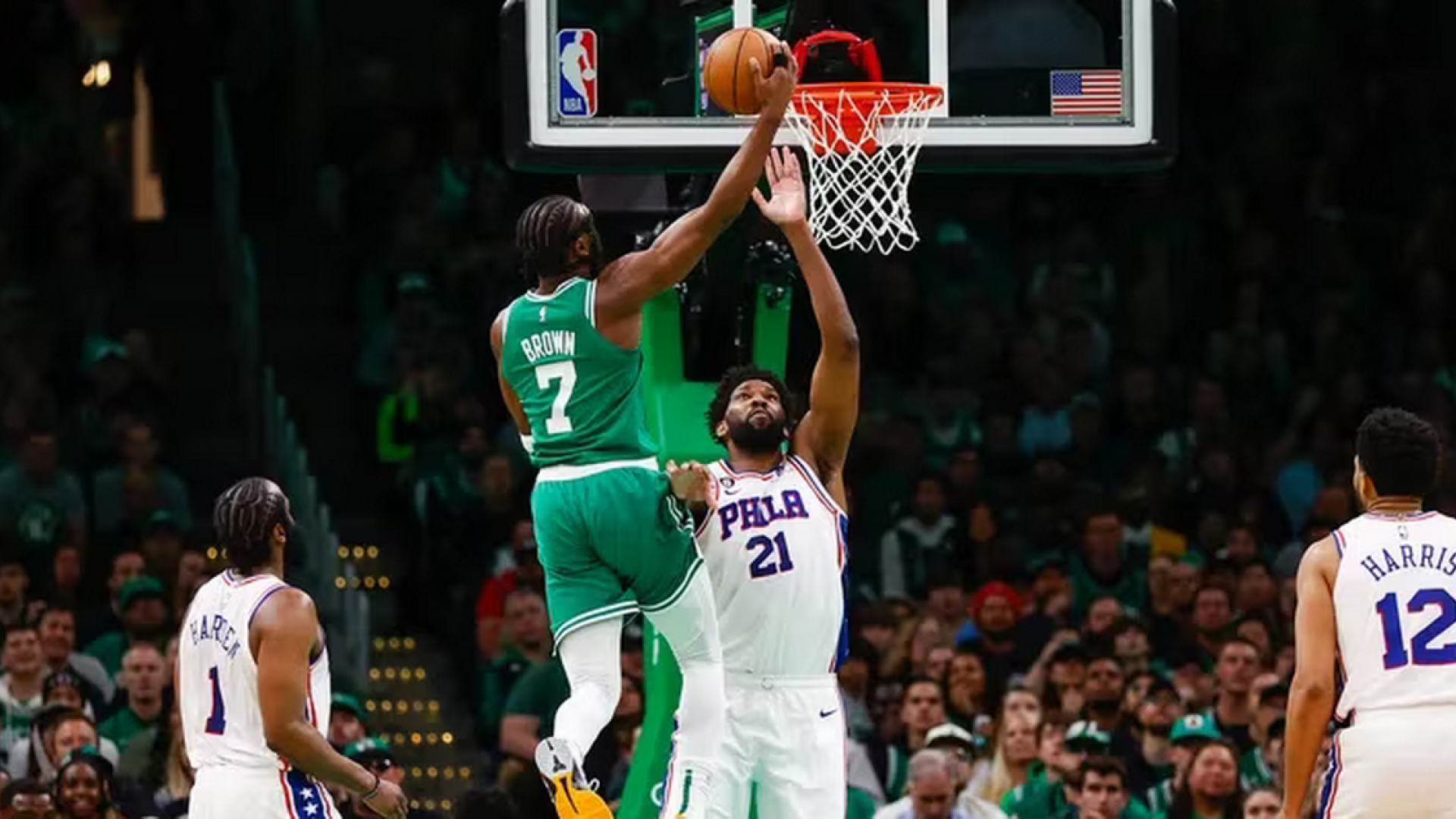 Παρά την επιστροφή του MVP Τζόελ Εμπίντ, οι Κέλτες διέλυσαν τους αντιπάλους τους χάρη στους Μπράουν και Μπρόγκντον, που σημείωσαν 25 και 23 πόντους αντίστοιχα, ενώ οι Σμαρτ και Γουάιτ είχαν από 15 έκαστος.
