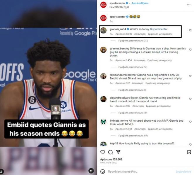 Ο ηγέτης των Μπακς δεν πήρε καθόλου καλά το σχόλιο του εν λόγω σάιτ και σχολίασε στη δημοσίευση: «Τι είναι τόσο αστείο»;