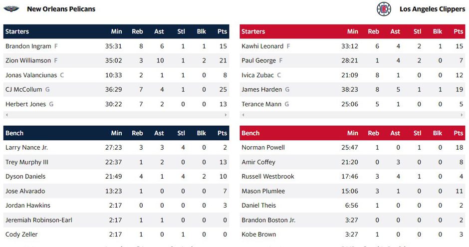 Τέταρτη σερί νίκη για τους "Πελεκάνους" με τον Μακόλουμ να πετυχαίνει 25 πόντους και τον Γουίλιαμσον 21. Ο Χάρντεν πέτυχε 19 για τους γηπεδούχους.