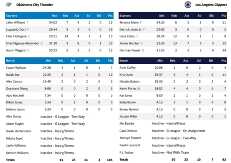 25 πόντοι ήταν ο απολογισμός του Σάι Γκίλτζιους Αλεξάντερ, ενώ για τους Κλίπερς, ξεχώρισε ο Πάουελ με 24 πόντους.