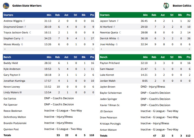 Μεγάλη νίκη των Γουόριορς μέσα στη Βοστόνη, με τους «Πολεμηστές» να νικούν τους πρωταθλητές Σέλτικς με 118-112, έχοντας τον Κάρι σε τρομερό βράδυ.