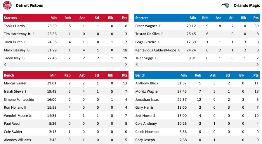 Το Ορλάντο συνεχίζει το θετικό ξεκίνημα του στη σεζόν, καθώς με αυτή τη νίκη του έφτασε τις 11 σε 18 αγώνες και τη 3η θέση της Ανατολής, με τους Πίστονς να πέφτουν στο 7-11.