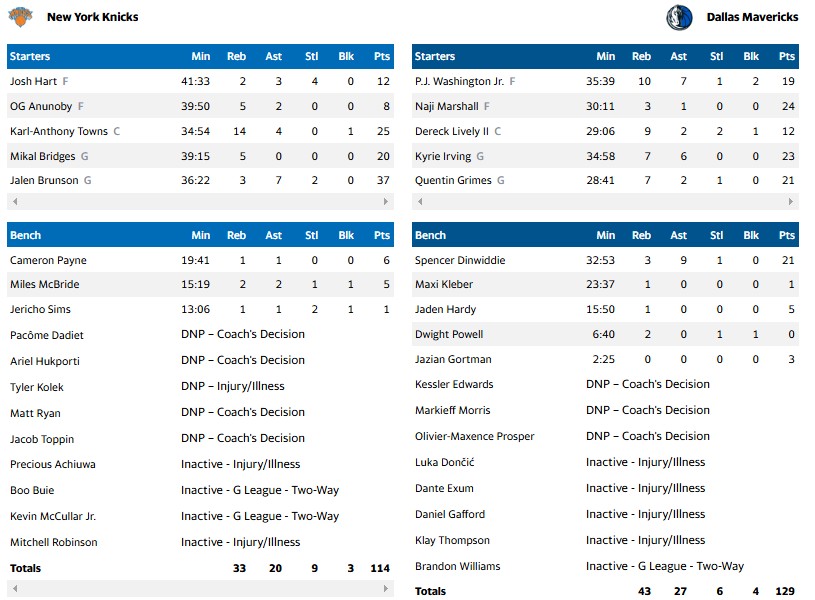 Το γεγονός ότι οι Μάβερικς μπορούν και χωρίς τον Ντόντσιτς έχει αποδειχθεί πλέον, με τους Μάρσαλ και Ίρβινγκ να βγαίνουν μπροστά στη νίκη επί των Νικς, έχοντας 24 και 23 πόντους αντίστοιχα.
