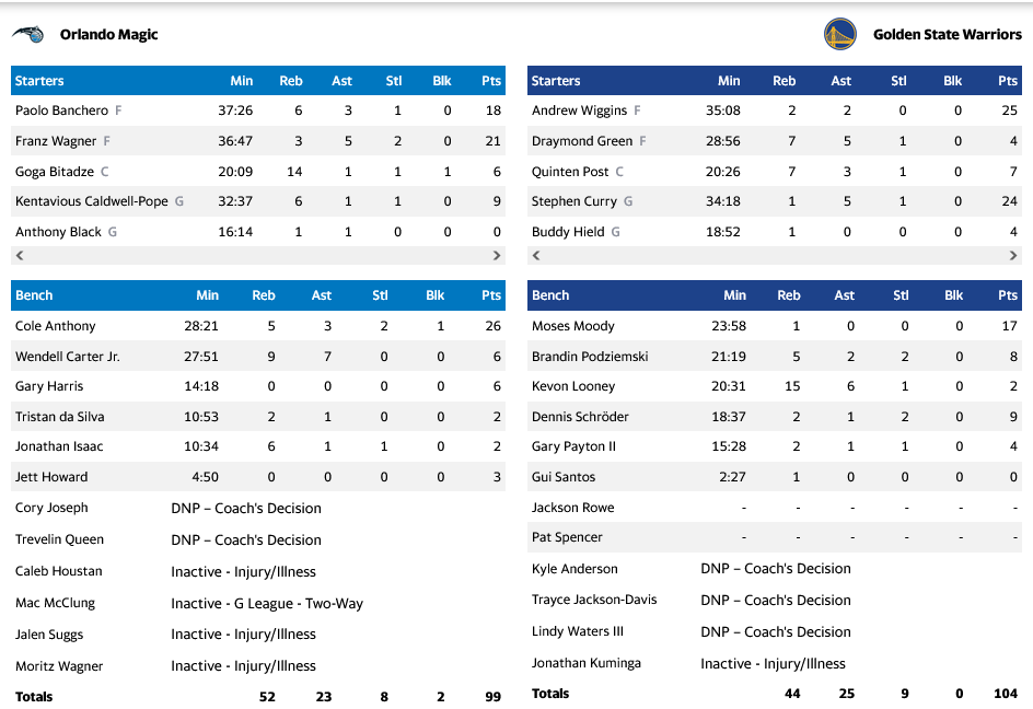 Για το Ορλάντο, των τεσσάρων σερί ηττών και εννιά στα 10 τελευταία ματς, ο Άντονι είχε 26 πόντους, ο Βάγκνερ 21 και ο Μπανκέρο 18, αλλά με μόλις 9/24 σουτ.