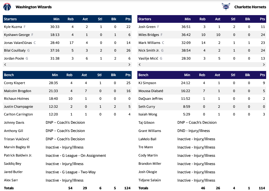 Ο άσος της Γουάσινγκτον τελείωσε το παιχνίδι με 24 πόντους, 10 ριμπάουντ και ισάριθμες ασίστ και είχε ως άξιο συμπαραστάτη τον Σμιθ με 24 πόντους και τον Γουίλιαμς με 23 πόντους και 14 ριμπάουντ.
