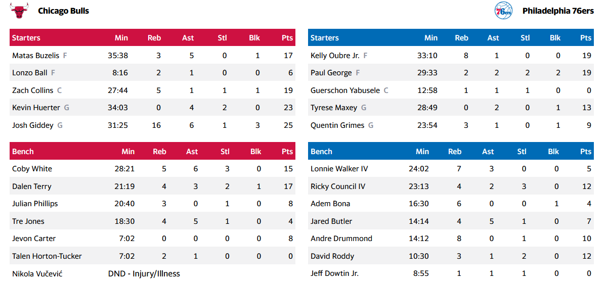 Οι ταύροι του Σικάγο τα ξημερώματα της Τρίτης (25/2) αναμετρήθηκαν με τους Φιλαδέλφια 76ερς και κατάφεραν πολύ εύκολα να επικρατήσουν με προβάδισμα 32 πόντων (142-110).