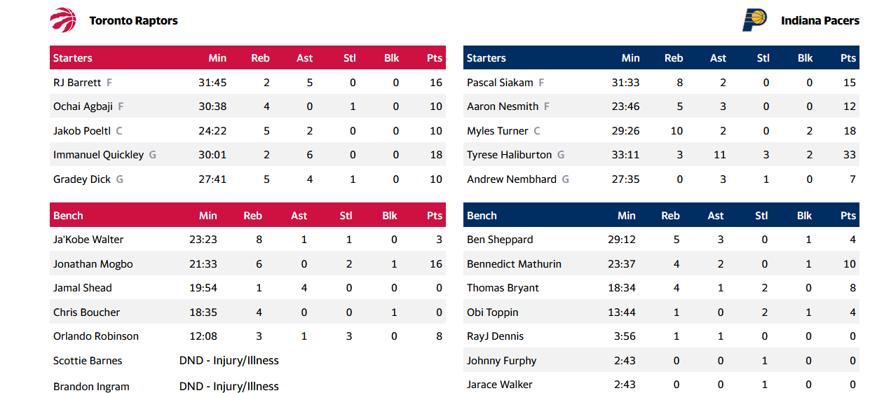 Απίστευτος Ταϊρίζ Χάλιμπερτον έφτασε τους 33 π΄ντους και μοίρασε 11 ασίστ, ενώ ο Μάιλς Τέρνερ πέτυχε 18 πόντους και μάζεψε 10 ριμπάουντ.