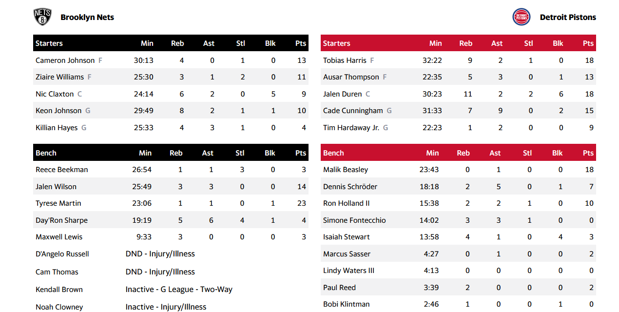 Από το Μπρούκλιν ξεχώρισε ο Ταϊρίζ Μάρτιν με 24 πόντους, καθώς και ο Κίον Τζόνσον με 10 πόντους και 8 ριμπάουντ.