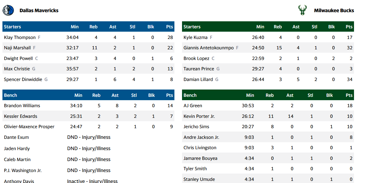 Από τους νικητές, απίστευτος Γιάννης Αντετοκούνμπο με 32 πόντους, 15 ριμπάουντ και 4 ασίστ και Ντάμιαν Λίλαρντ με 34 πόντους, 3 ριμπάουντ και 5 ασίστ.