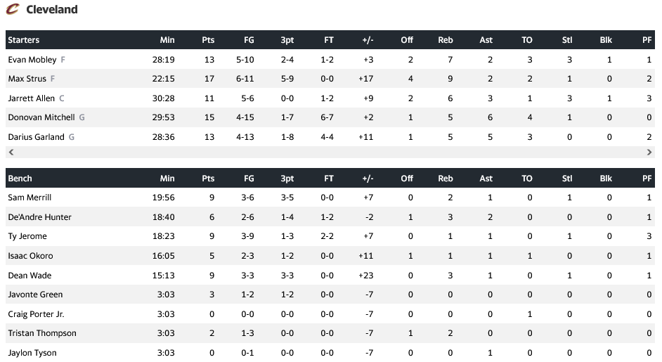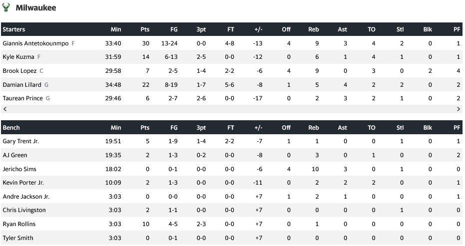 Κορυφαίος για τους νικητές ήταν ο Μαξ Στρους με 17 πόντους, 9 ριμπάουντ και 2 ασίστ, έχοντας για συμπαραστάτες του τους Ντόνοβαν Μίτσελ (15π, 6ασ, 5ρ), Ντ΄αριους Γκάρλαντ (13π, 5ρ, 5ασ) και Έβαν Μόμπλι (13π, 7ρ). Για τους γηπεδο΄υχους ξε΄χωρισε ο Γιάννης Αντετοκούνμπο με 30 πόντους και 9 ριμπάουντ, με τον Ντέιμιαν Λίλαρντ να προσθέτει 22 πόντους και 5 ριμπάουντ.