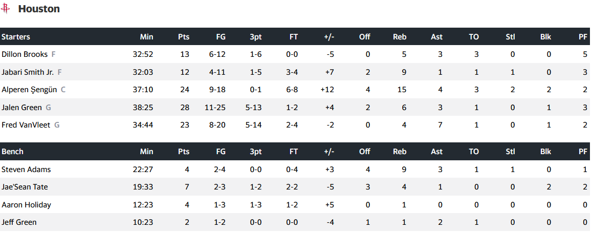 Από τους νικητές ξεχώρισαν οι Τζέιλεν Γκριν με 28 πόντους και 6 ριμπάουντ και Άλπερεν Σένγκουιν με 24 πόντους, 15 ριμπάουντ και 4 ασίστ.