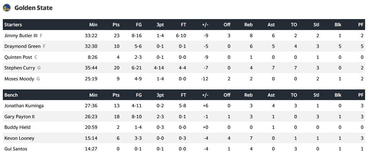 Από την άλλη, ξεχώρισε o Τζίμι Μπάτλερ με 23 πόντους, 8 ριμπάουντ και 6 ασίστ, καθώς και ο Στέφεν Κάρι με 20 πόντους και 7 ασίστ.