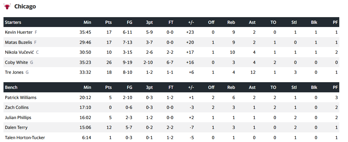 Aπό τους νικητές ξεχώρισε ο Κόντι Γουάιτ με 26 πόντους και 4 ασίστ, καθώς και ο Τρι Τζόουνς με 18 πόντους και 12 ασίστ.