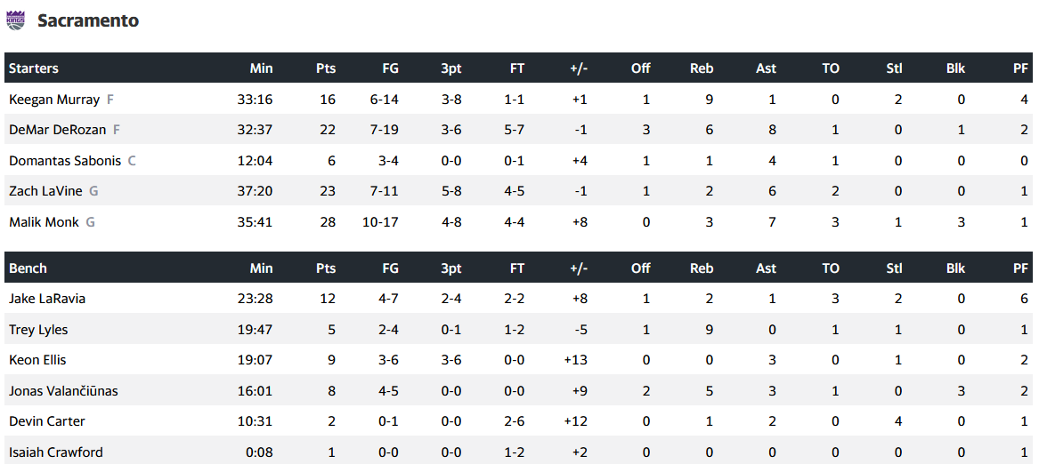 Από τους νικητ΄ες Βασιλιάδες πρωταγωνιστής ήταν ο Μάλικ Μονκ με 28 πόντους και 7 ασίστ, καθώς και ο ΝτιΜαρ ΝτιΡόζαν με 22 πόντους, 8 ασίστ και 6 ριμπάουντ.