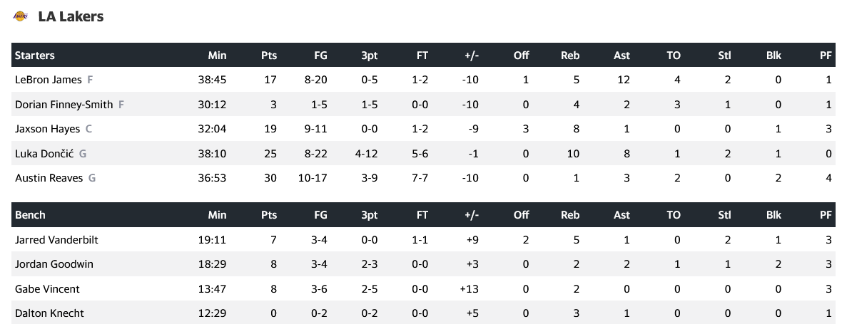 Aπίστευτη μάχη μέχρι τέλους έδωσαν Σικάγο και Λος Άντζελες με τους 30 πόντους του Ριβς, τις 12 ασίστ του Λεμπρόν και τους 25 του Ντόντιτς να μην είναι αρκετοί για να στείλουν τη νίκη στους «Λιμνανθρώπους». Ο Σλοβένος μάλιστα, ήταν πολύ κοντά στο triple-double, αφού πέτυχε 25 πόντους, 10 ριμπάουντ και 8 ασίστ.