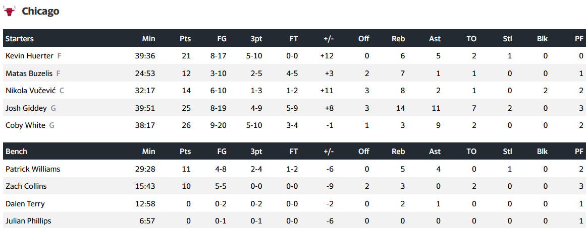 Αυτό που δεν κατάφερε ο Ντόντιτς, το πέτυχε ο Τζος Γκίντι, που αποδείχτηκε σωτήρας των Ταύρων, με την εκπληκτική του εμφάνιση στην εκπνοή του ματς και με το buzzer beater τρίποντο που χάρισε την επικράτηση στους «κόκκινους» του Σικάγο. Ο Αυστραλός με 25 πόντους, 14 ριμπάουντ και 11 ασίστ, κάνοντας triple-double, καθώς και ο Κόντι Γουάιτ με 26 πόντους και 9 ασίστ ισοπέδωσαν τους Λέικερς και πήραν τη νίκη από το πουθενά, με 3 τρίποντα σε μόλις 12 δευτερόλεπτα.