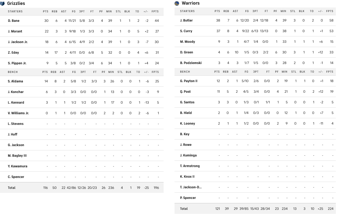 Από πλευράς Γκρίζλις, ο Μπέιν σκόραρε 30 πόντους και ο Μοράντ 22.