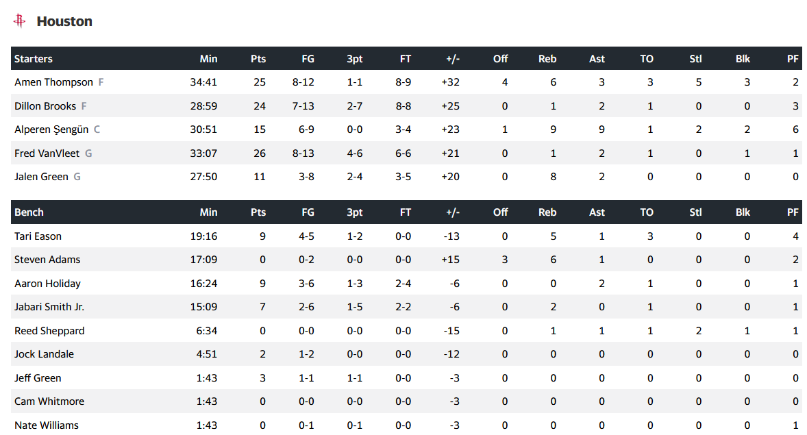 Από το Γκόλντεν Στέιτ ξεχώρισε ο Μούζες Μούντι με 25 πόντους και 9 ριμπάουντ, καθώς και ο Στέφεν Κάρι με 13 πόντους και 7 ασίστ.