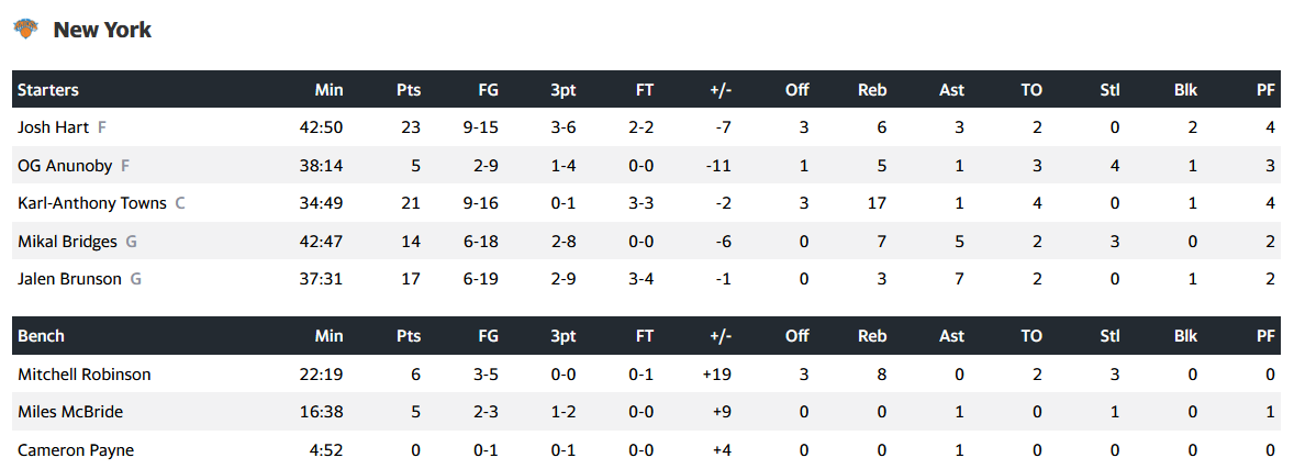 Από τους νικητές ξεχώρισε ο Καρλ-Άντονι Τάουνς με 21 πόντους και 17 ριμπάουντ, καθ΄ως και ο Τζος Χαρτ με 23 πόντους και 6 ριμπάουντ.